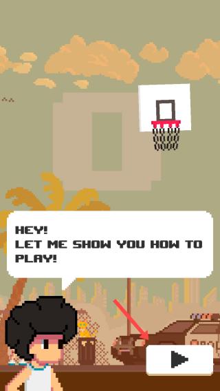 3、按照教学指示,点击【箭头】所指的位置,进行投篮等游戏操作,完成教学任务。