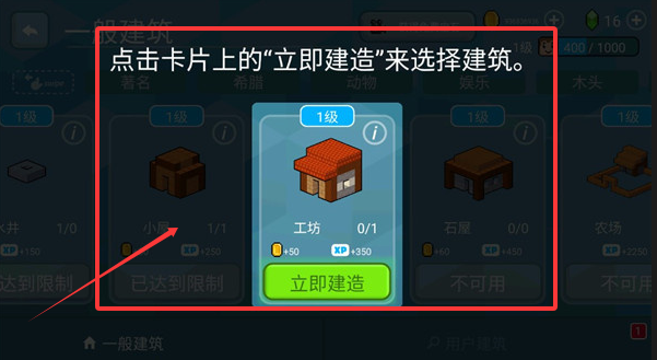 1、进入游戏后,首先需要在地面上建造一个工坊。