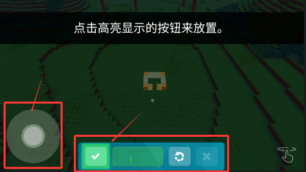 2、可以拖动方向杆来决定要建造的位置,决定好位置后点击打勾进行放置。