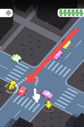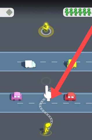 2、时机把握操作:发现合适时机后,迅速滑动屏幕操控小人出发,根据车辆动态调整前进节奏,确保在车辆到达前安全通过马路,避免碰撞,顺利完成关卡挑战。