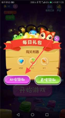 3、看到每日礼包界面时,点击【双倍领取】或【直接领取】获取奖励,如钻石等闯关利器,为后续关卡提供助力,提升游戏体验。