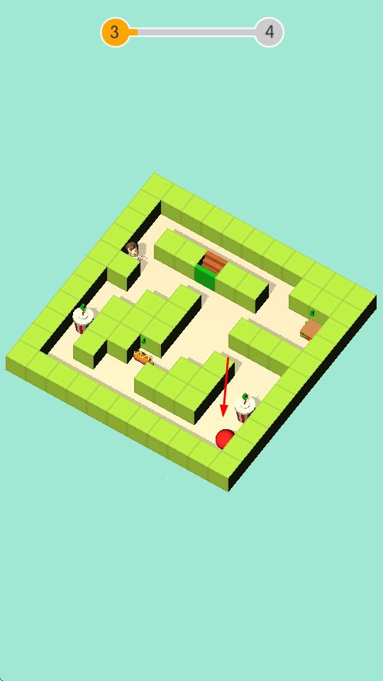 2、吃掉所有快餐后,迷宫上层的楼梯会被打开,控制迷宫让人物到达出口。