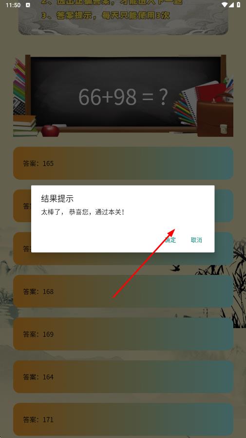 1、关卡挑战答题:进入关卡直面数学问题,在脑海中快速计算推演,从给定选项中选出正确答案,成功解锁下一关。