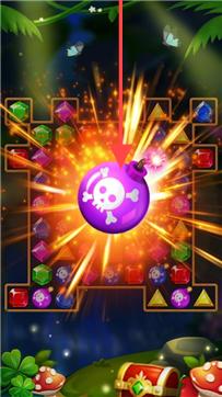 2、使用紫色骷髅头炸弹,爆炸时释放强烈光芒与能量,大范围消除宝石,展现震撼视觉效果。