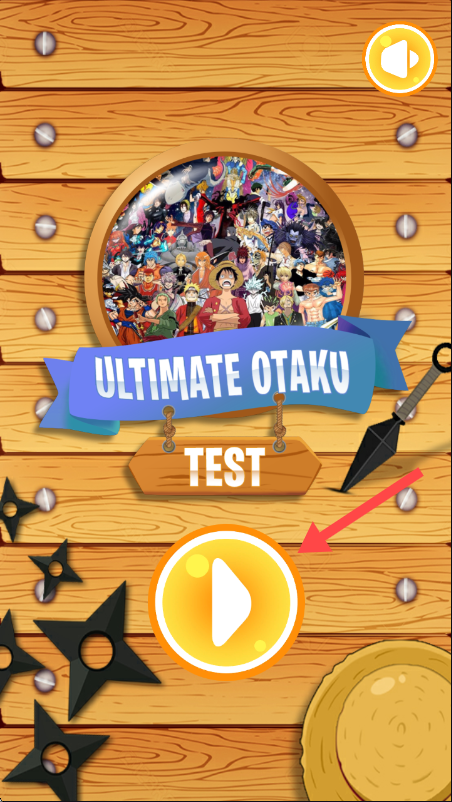 1、进入游戏界面,点击箭头所指的黄色【播放按钮】,开启【ULTIMATE OTAKU TEST】游戏之旅。