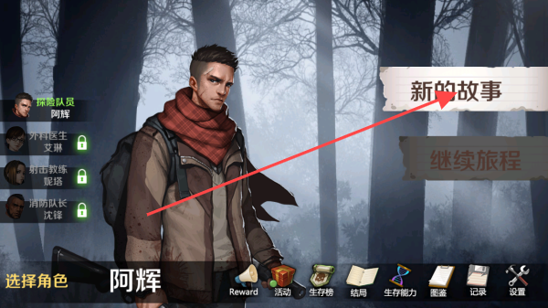 1、在角色选择界面点击【新的故事】选择【阿辉】等角色开启游戏剧情体验。