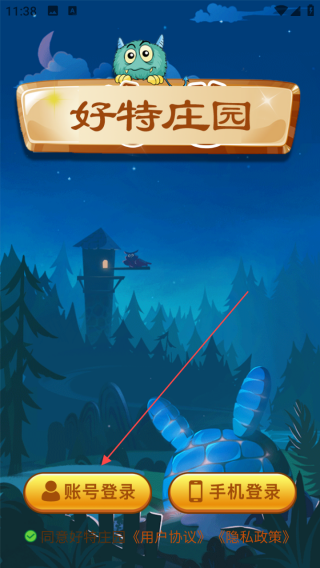 1、进入游戏界面,可见【账号登录】按钮,点击该按钮可通过账号进行登录,开启游戏之旅。