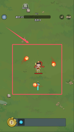 1、操控角色移动,通过划屏控制转刀攻击方向,消灭四周敌人。