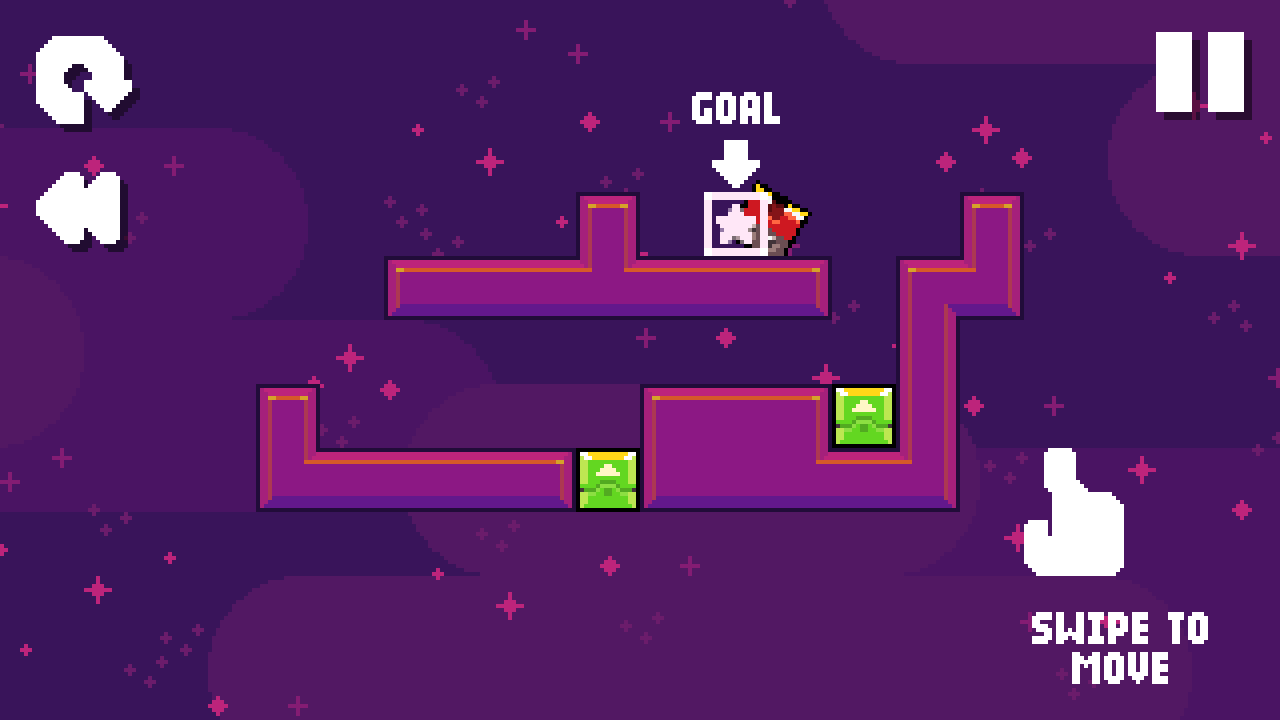 2、进入关卡后,根据提示,滑动屏幕操控角色移动,避开绿色敌人,朝着【GOAL】目标点前进。