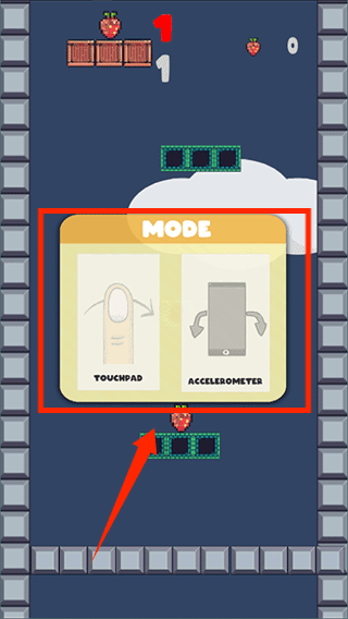 1、打开游戏,进入游戏画面,玩家可以自由选择触碰或者重力来控制左右移动。