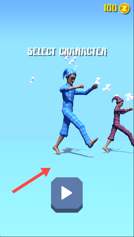 1、进入【SELECT CHARACTER】界面,按箭头指示操作,点击播放按钮选择角色进入游戏。