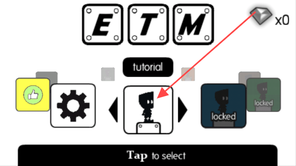 1、在初始界面点击角色图标按【Tap to select】提示选择角色并可通过【tutorial】按钮了解游戏基础操作。