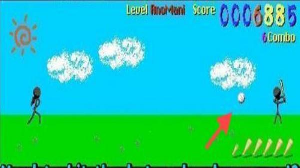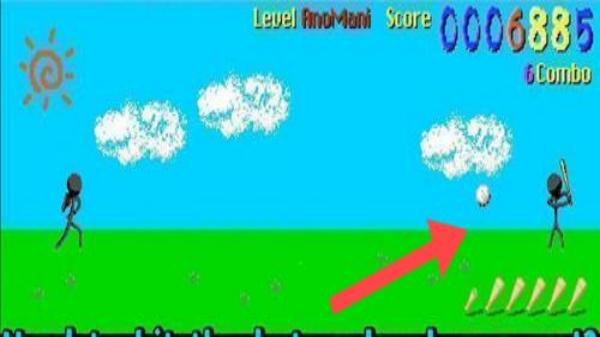 1、在游戏进行中,按【箭头】所指方向,操控角色进行击球操作,完成棒球游戏环节。