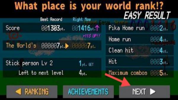 3、在结果界面,点击【箭头】所指的【NEXT】按钮,进入下一局游戏或下一环节。