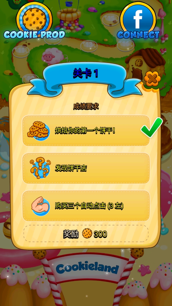 1、在关卡1中,按成绩要求,先完成烘焙你的第一个饼干任务。
