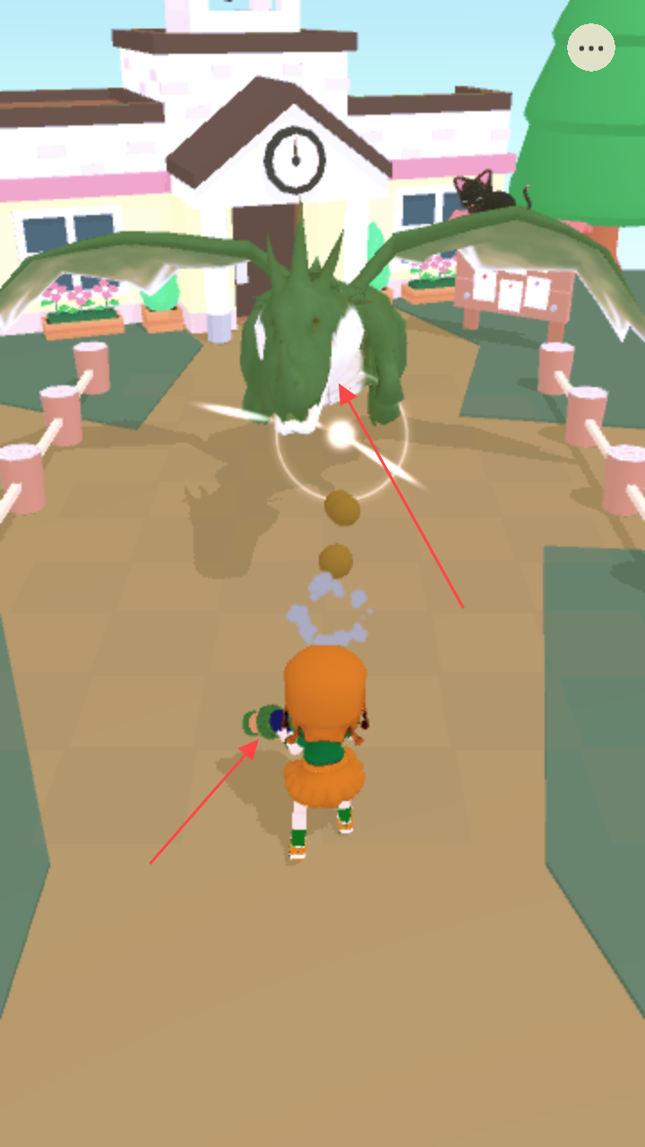 2、操控角色向绿色巨龙前进,利用角色手中道具进行互动或攻击,注意巨龙的反应和游戏场景变化。