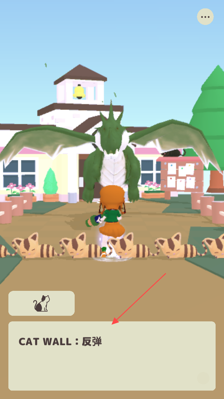 3、遇到【WALL反弹】提示时,利用猫墙的反弹机制,调整角色行动策略,继续挑战巨龙或完成目标。