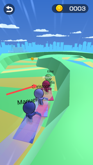 2、在游戏进行中按【箭头】指示方向,操控角色在滑道上滑行,与其他角色竞争。