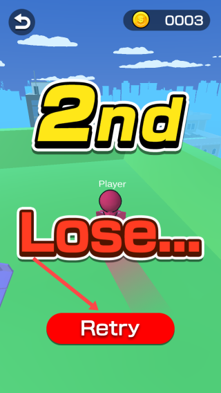3、游戏失败后,点击【箭头】所指的“Retry”按钮,重新开始当前关卡。