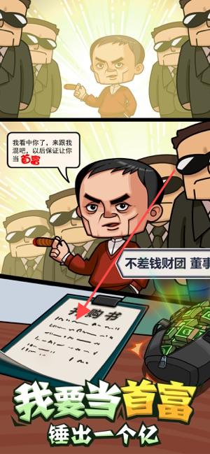 2、【我要当首富主题,人物旁有【不差钱财团董事】字样,下方【应聘书】等元素,营造出当首富的游戏氛围。