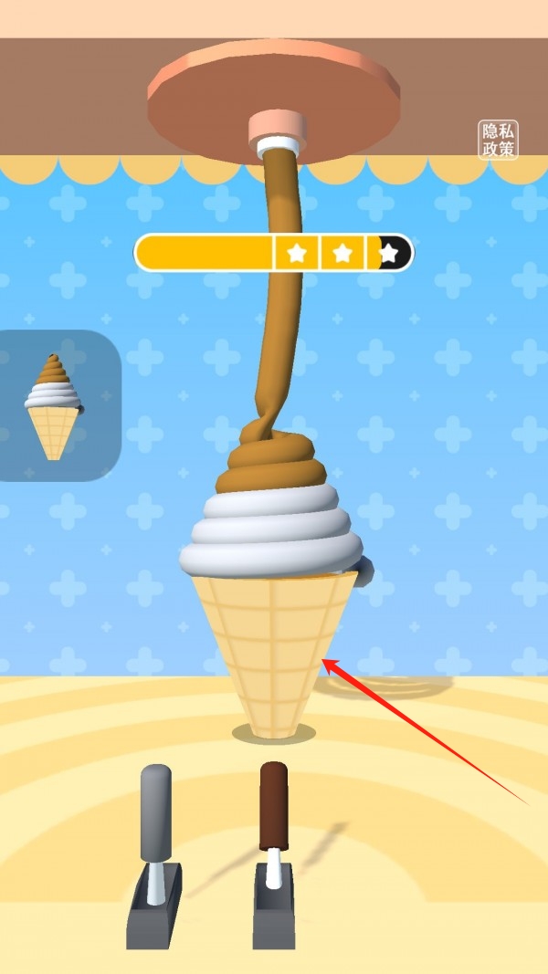 1、进入游戏后,先熟悉基础制作流程:选择甜筒或杯子,挤入冰淇淋,添加糖浆,撒上配料,装饰点缀按照顾客订单要求快速制作,提升服务效率与顾客满意度。