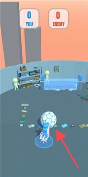 1、进入游戏界面,操控【蓝色角色】在房间内活动,画面上方显示【YOU】与【ENEMY】分数均为0,开启对战准备。