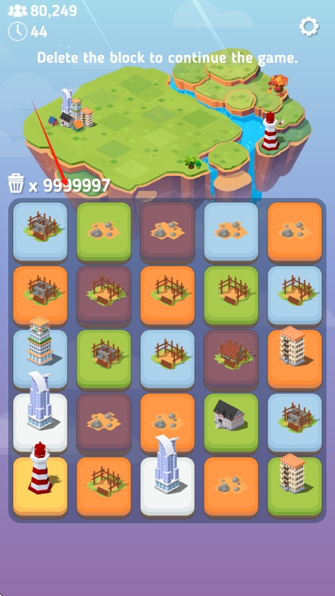 2、如果没有可以合并的,可以点击单个的方块选择删除,左上角是可删除的次数。