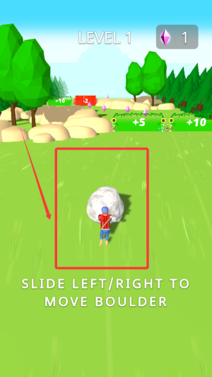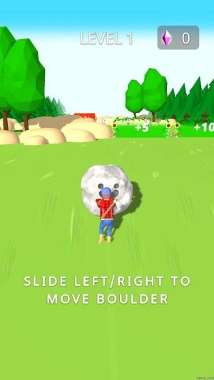 2 、通过简单的操作,控制巨石在田园场景中滚动,利用巨石的破坏力,摧毁沿途的房屋,同时朝着关卡终点前进。