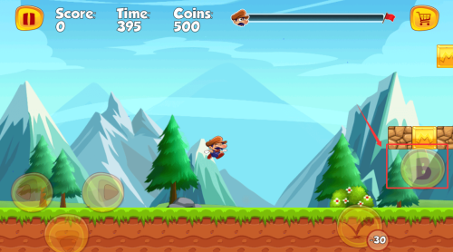 3、左下角按键控制角色前进后退和下蹲,右下角为子弹,发射会消耗金币,B代表跳跃,连续点击可以跳的更高哦。