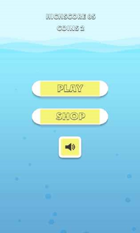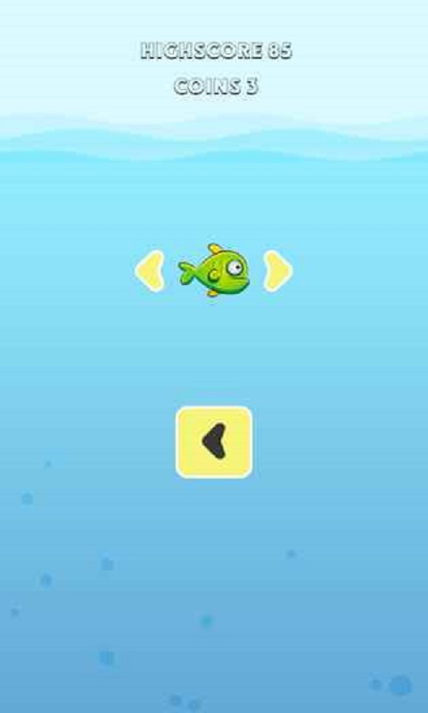 1、进入初始主界面,关注上方【HIGHSCORE-85】,点击黄色播放按钮,操控绿色小鱼开始游戏。