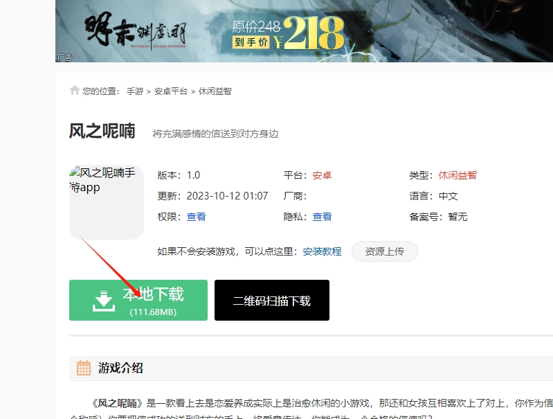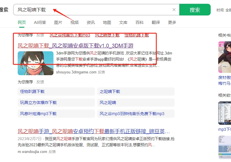 1、在网站上搜索风之呢喃下载,并点击图片标记的链接进去下载。