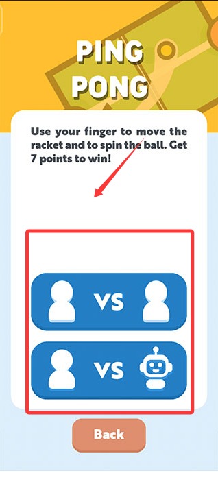 2、以乒乓球游戏为例,人机模式和智能机器人对战,双人模式可以和好友进行游戏。