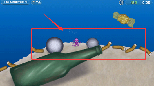 3、通过移动小章鱼来进行吃垃圾,时间花的越少评价就越高。