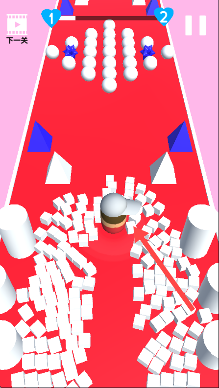 2、障碍设计丰富多元:关卡中设置多种类型的障碍,既有需要精准推动的白色模型,也有快速移动的彩色模型,部分关卡还加入动态机关。
