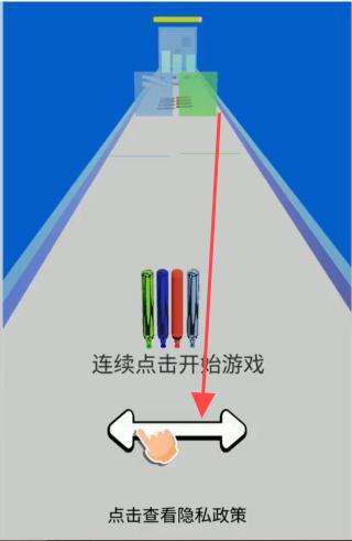 1、在游戏开始界面,根据提示【连续点击开始游戏】,快速点击屏幕下方箭头处,进入游戏关卡。