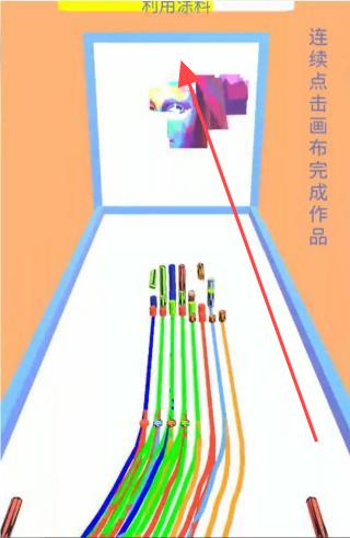 3、到达关卡终点,依据提示【连续点击画布完成作品】,快速点击画布区域,利用收集的颜料完成画作,顺利通过关卡。