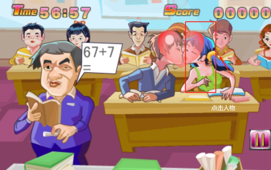 2、在游戏过程中,抓住时机点击相应人物,完成互动操作,同时注意时间和分数变化。