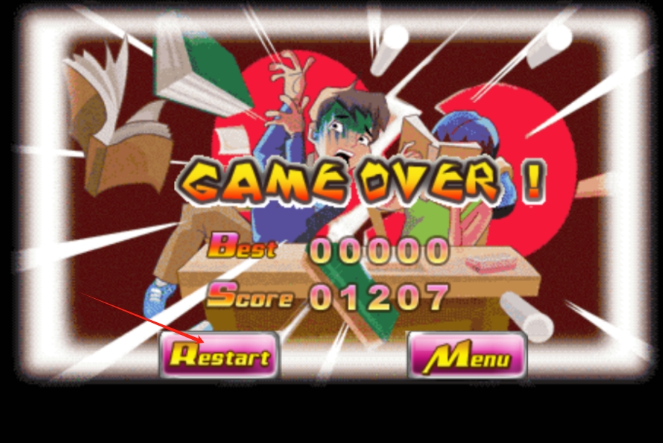 3、游戏结束看到GAMEOVER后,若想重新开始,点击Restart按钮,再次挑战。
