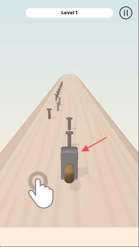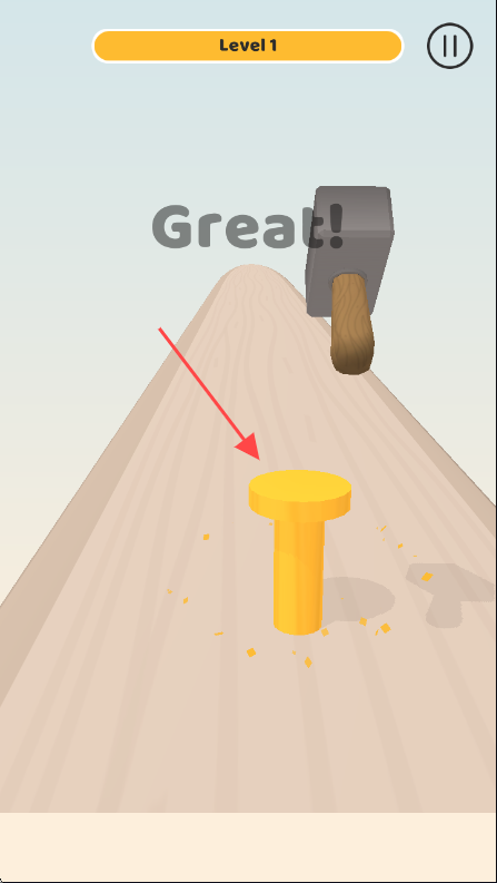 2、进入【Level 1】关卡,画面中显示锤子和钉子,玩家通过点击屏幕操控锤子敲击钉子,进行游戏操作。