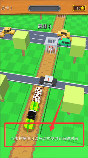 2、点击按住就可以把动物发射到对面,注意看准车辆通过的时间。