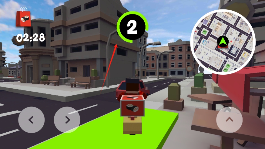 3、目的地也是一个绿色的箭头,需要在目的地上带上几秒钟,倒计时结束才算送货成功。