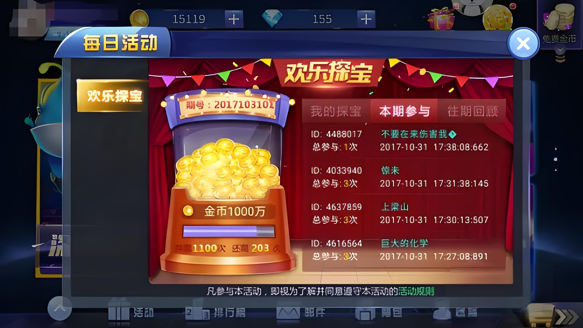 3、在欢乐探宝页面也可以通过本期参与和往期回顾来查看中奖情况。