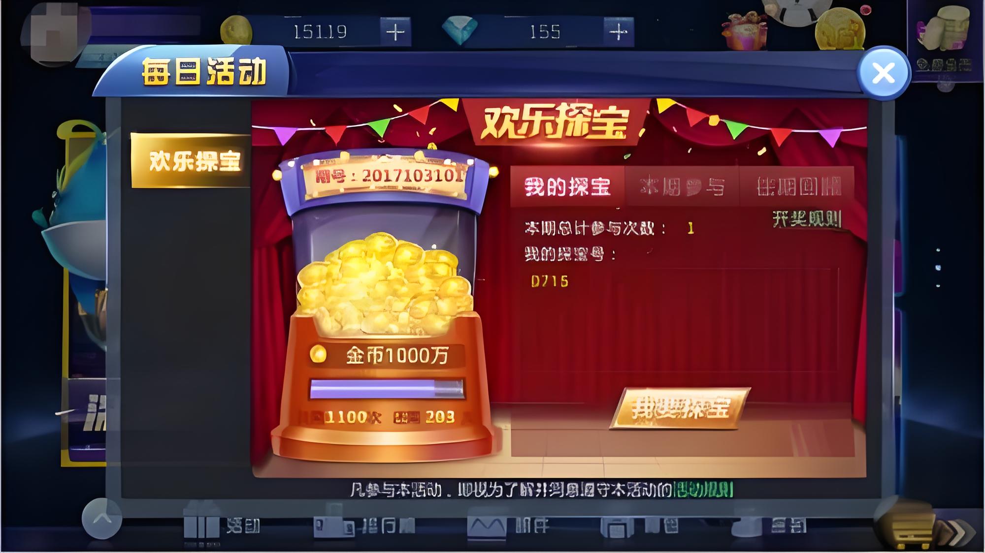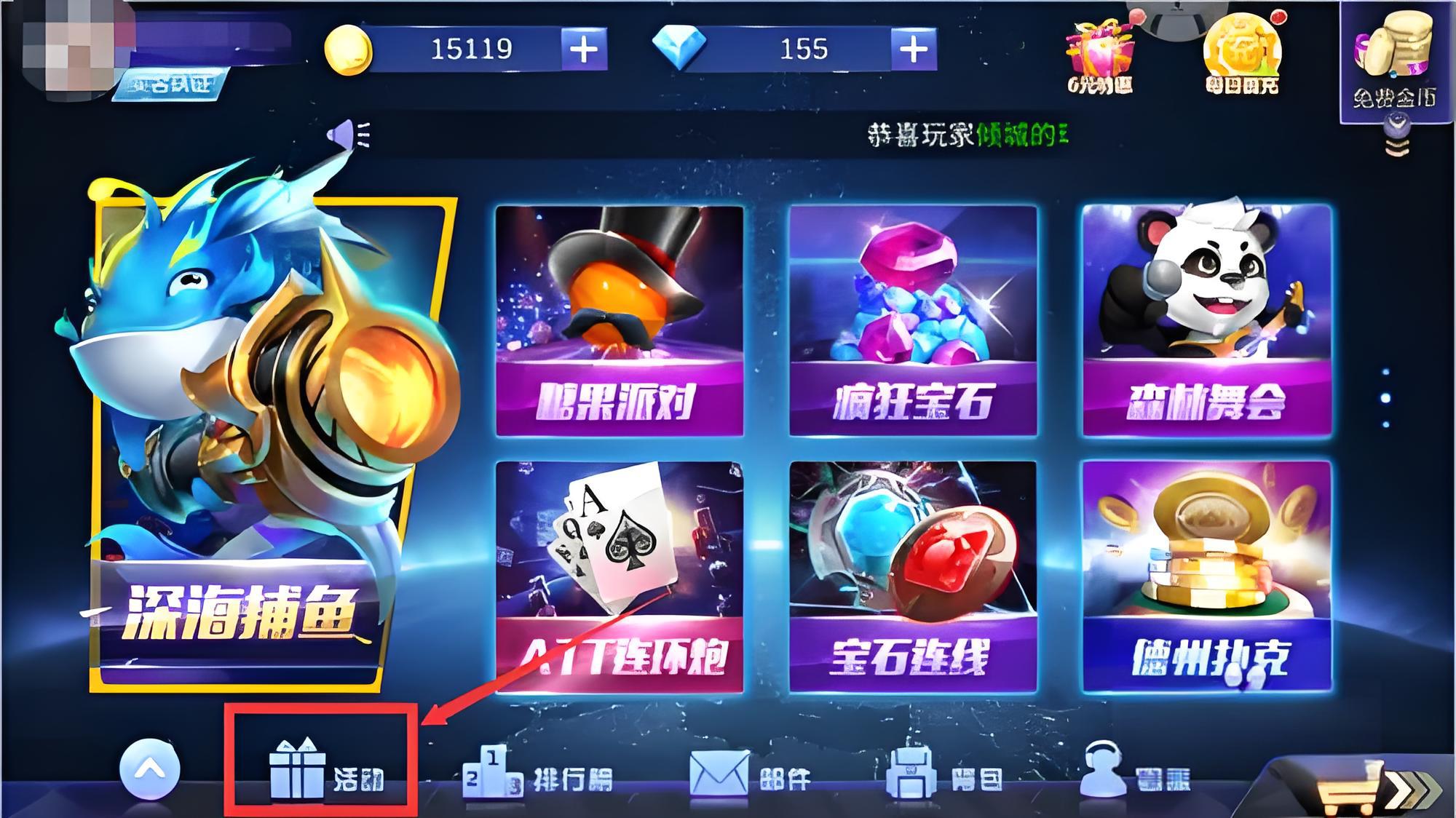 1、进入龙珠探宝游戏,在大厅页面内点击活动进入欢乐探宝活动界面。