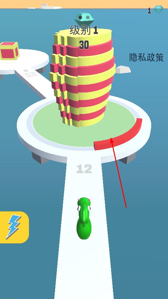 2、角色到达塔楼处,通过撞击或其他方式破坏塔楼的红色部分,使塔楼数值减少。