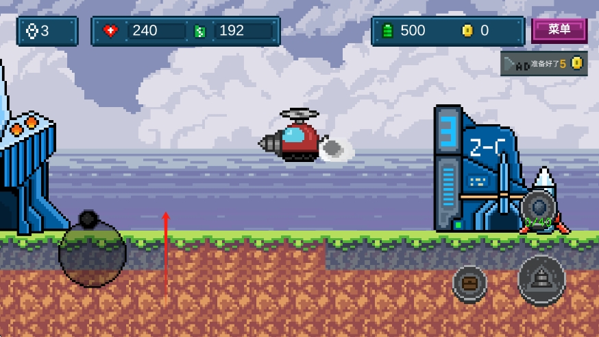 2、摇杆控制矿车移动,往上划或者点击上方可以控制矿车像直升机一样起飞。