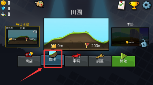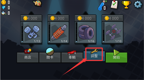 2、通过比赛赚取金币,用于解锁新车辆和升级部件,不同地形需要搭配不同配置。