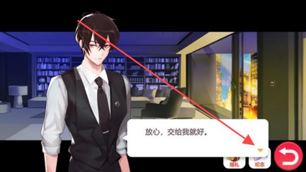 2、在剧情对话场景中,留意角色话语,如“放心,交给我就好。”,通过点击相关选项推进剧情,还可适时进行献礼、纪念等互动操作,增进与角色关系。