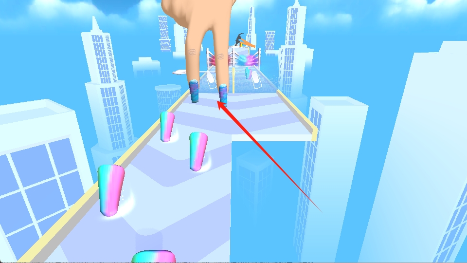 2、收集道具系统:沿途收集各类指甲与装饰道具,提升美观度与游戏得分,应对复杂跑道挑战。