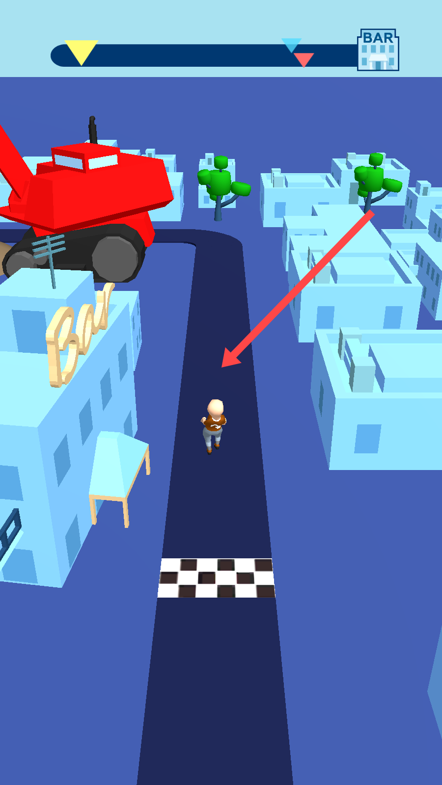 1、障碍躲避奔跑:在赛道上控制醉酒角色急速奔跑,你需要凭借灵活走位避开各类障碍物与危险,保持平衡前行。