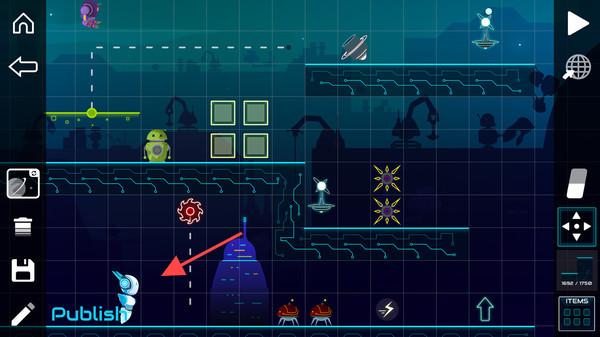 2、在地图制作界面,利用左侧工具(如删除、保存等)和下方的“Publish”相关功能,开始设计关卡。
